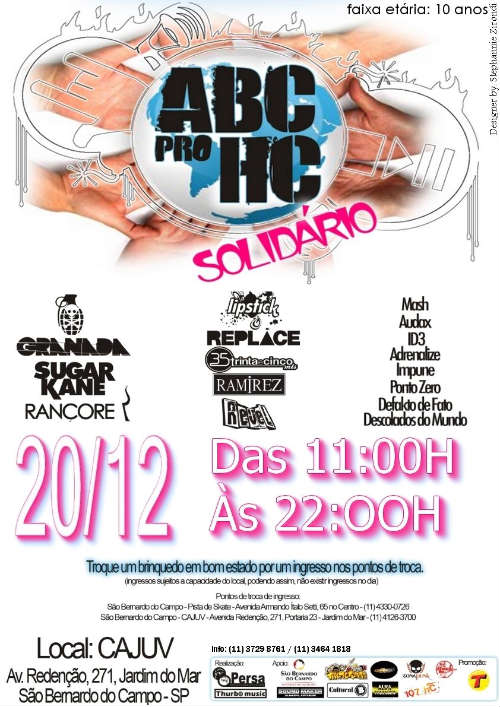 Dia 20.12 iremos trazer grandes bandas do cenário musical brasileiro para a realização da 1ª edição do Pró- HC Solidário, em prol de uma nobre causa.